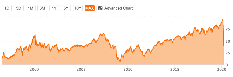 Insider bought Lamar and OUTFRONT during last week’s panic and is sitting on a tidy gain.  Insider has his eye on the long term and doesn’t expect to sell for several years.  The economy will recover and when it does out of home stocks will rise dramatically.  Look how Lamar stock has performed since 1996.  Out of home recovered from 9/11.  Out of home recovered from the great recession.  Out of home will recover from coronavirus.