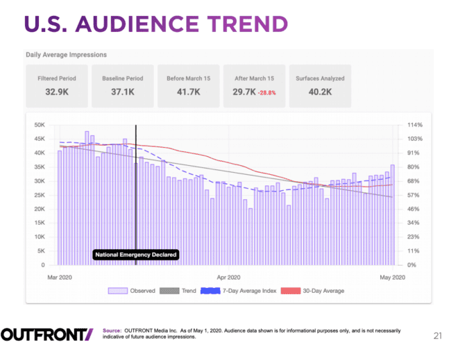 This is data from our proprietary Smart Scout platform. We’ve been giving it to our clients by market and by location to help them in their planning and to show that our media are still delivering significant impressions. It shows that our overall audience is at 80% of pre-COVID levels and there is a nice uptick in the seven-day trend.