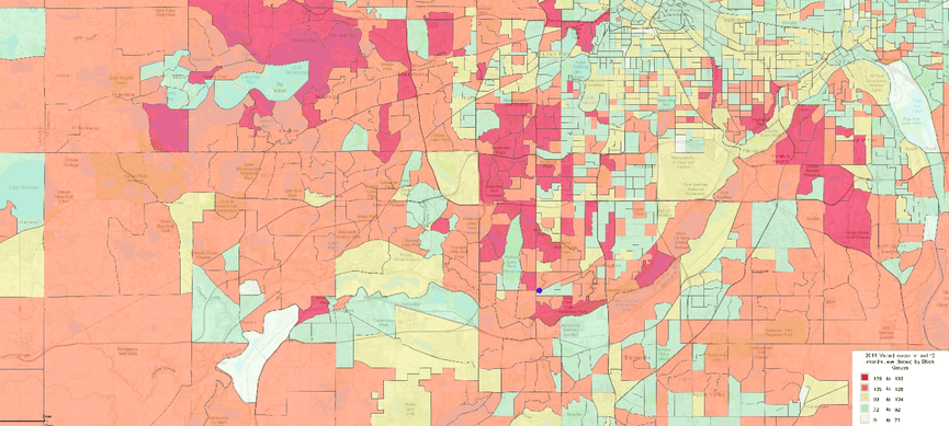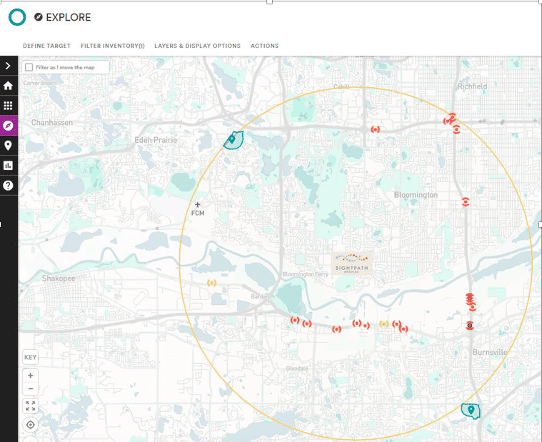 In fact, focusing on the location of the Sightpath office in Bloomington, MN, we are able to locate “hot spots” of target neighborhoods where residents have seen any eye doctor in the last 12 months.