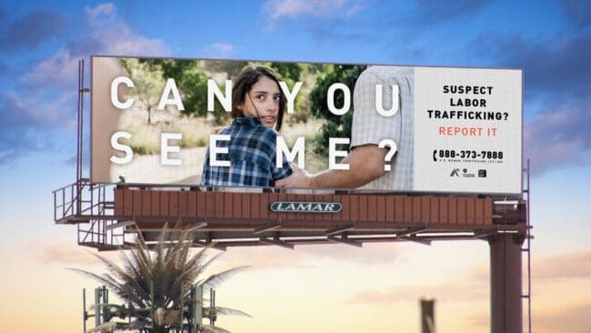 “Human trafficking remains a heartbreaking and tragic problem that demands increased awareness and public action,” said Mendi Robinson, AVP of Marketing and Creative Director for Lamar Advertising. “Using our national digital billboard network, we are perfectly positioned to help spread this message and to reach mass amounts of travelers. I believe that out of home campaigns, with their direct messages and powerful designs, make a difference.”