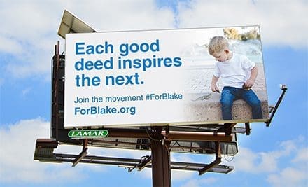 “Blake’s memory is an inspiration and a reminder of how meaningful a simple good deed can be, especially during difficult and challenging times,” said Ian Dallimore, Lamar Vice President of Digital Growth. “We are so proud to be part of this campaign and to deploy our digital billboard network to help spread Blake’s legacy and message.”