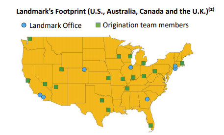 - The company is aggressively seeking growth. You should assume that Landmark is aggressively soliciting your landlords to sell their billboard leases. Insider gets a couple letters a month from Landmark asking if he wants to sell any out of home leases. Landmark is primarily interested in out of home leases which are generating in excess of $300/month in rents. Here’s a map of Landmark’s US offices and origination team members.