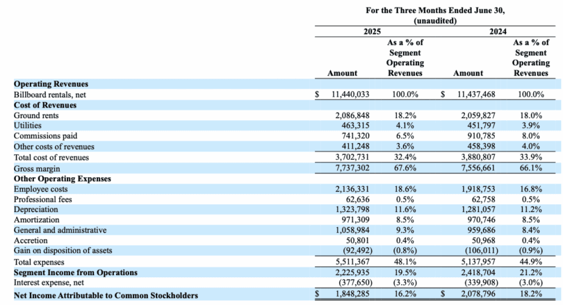 Link Media Outdoor, the out of home subsidiary of publicly-traded Boston Omaha, had flat revenues during 2Q 2025. Here are the results of the Boston Omaha 2Q 2025 earnings release, sponsored and analyzed by SignValue.