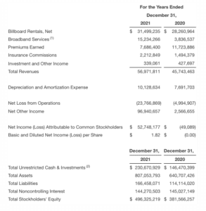 Link Media parent company, Boston Omaha provided a press release with their 2021 financials. Here is the release: