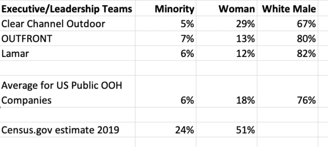 Insider analyzed the makeup of the boards and the executive/leadership teams of the three public out of home companies (Lamar, OUTFRONT and Clear Channel Outdoor) and here’s what he found.