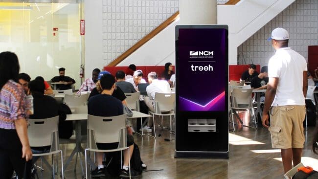 “Ours is the only national, digital, addressable campus media network in the U.S., and it’s all about reaching young, valuable consumers where they are each and every day, making unforgettable memories. Because of the high dwell times and high impact placements of our screens, 92% of students say they notice them with 86% purchase intent after exposure. That’s a powerful way to influence the next generation of consumers,” said President & CEO at Trooh, Martin Poitras.