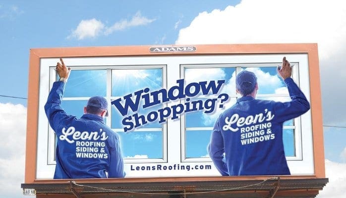 In this particular case, the story is a window company that not only sells windows, but installs them. The advertising is a billboard, so to simplify things, make the billboard a window. It has a frame just like a window after all. Next, tell more of the story. Part of the business is the installation, so show two guys doing just that. And, any quality, reputable business has uniforms, which is why you let them into your house. This is where the logo comes in, but naturally. The uniforms wouldn’t be uniforms without the company logo. The great thing here is that you get the logo TWICE in the advertising, but it doesn’t look redundant or odd, because in real-life that’s exactly what you’d see. Bonus.