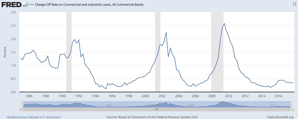 Now is a good time to refinance and extend your out of home company’s credit lines. Bank loan chargeoffs have been extremely low for the past 4 years.