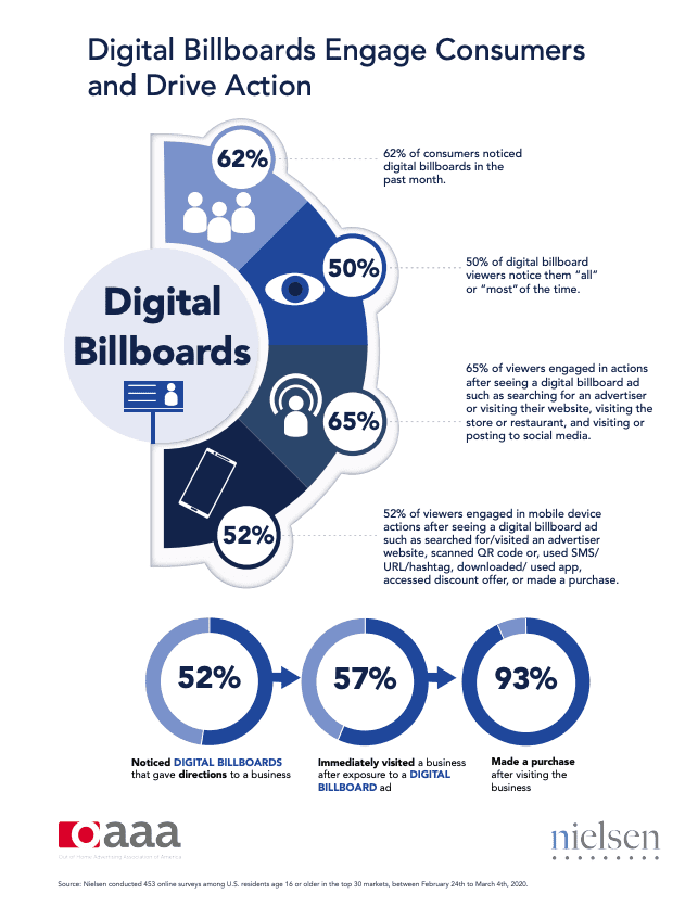 The OAAA and Nielsen have put together a terrific infographics series summarizing Nielsen’s 2020 digital OOH Advertising report. Here’s the infographic on digital billboards. We’ll run the rest of the infographics over the next few days.