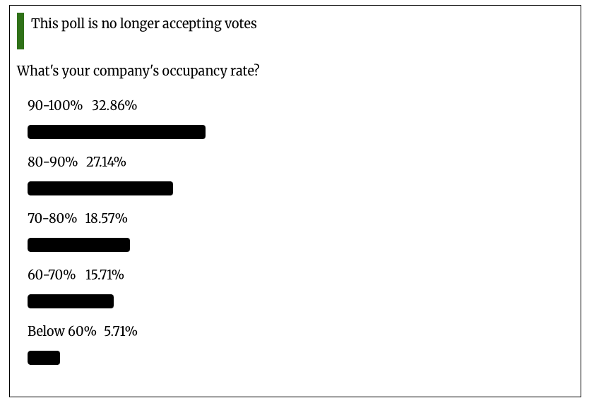 We have several markets where its cabin traffic in our Northern State. Its 100% sold in the summer and more like 60% in the winter due to the town having less people coming and going. We try to get people to buy year-round or charge a premium for the 6 month “nice weather” months. In our more metro markets we don’t have those types of swings and the occupancy rate is smoother.