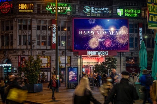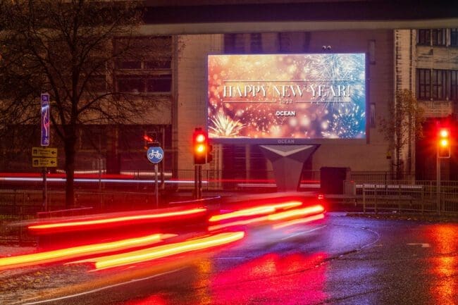 In the UK, premium DOOH operator Ocean Outdoor switched more than 380 of its large format and full motion city centre and roadside screens to a vibrant explosion of colour to ring in the start of 2022.