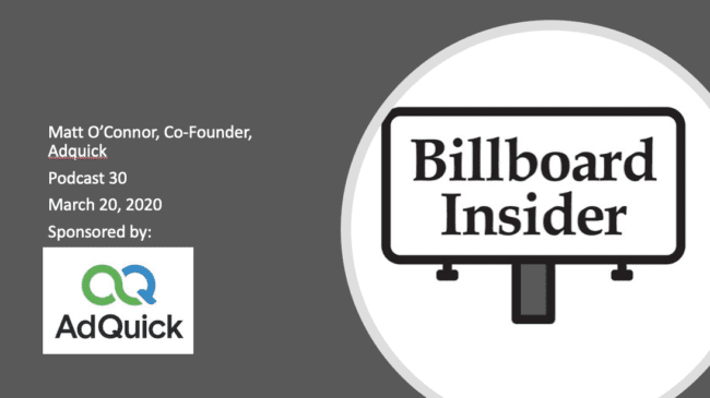 Today’s podcast guest is AdQuick co-founder Matt O’Connor. AdQuick was founded almost four years ago to automate out of home ad buying. Matt talks about the impact of coronavirus on automated selling and what the industry and advertisers need to do now to be prepared when quarantines clear.