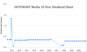 - OUTFRONT currently pays an annual dividend of $0.92 per share, with a dividend yield of 5.02%. OUTFRONT currently pays out 65.71% of its earnings as dividends. OUTFRONT will be paying a special one time dividend later this year relating to the sale of the Canadian business.