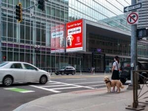 The new W Boston billboard is built from SNA Displays’ EMPIRE™ line of exterior display products and employs an 8.0 mm pixel pitch. The video screen is approximately 24’ tall by 13’ wide and sports a resolution of 900 x 680 pixels. It’s also not far from Millennium Place, another digital out-of-home (OOH) collaboration between Orange Barrel Media and SNA Displays.