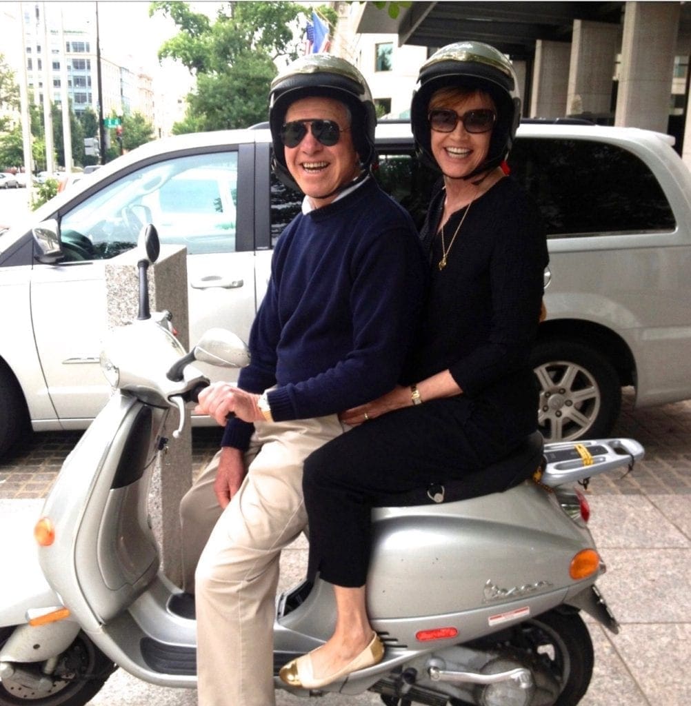 Always on the look out for the latest out of home displays, OAAA President Nancy Fletcher and her husband Ron zip around Washington DC on a Vespa, including to church on Sundays.