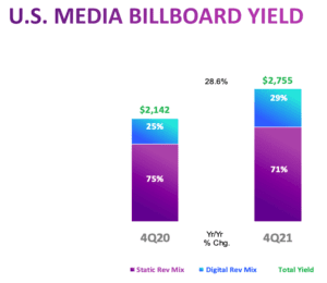 - The company’s US Media billboard yield grew by 26% as you can see from the chart below.