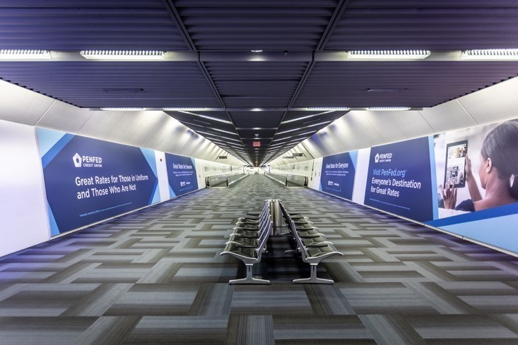 TYSONS, Va., Feb. 9, 2021 /PRNewswire/ — PenFed Credit Union, the nation’s second largest federal credit union, today announced the launch of its massive advertising campaign in the Washington Dulles International Airport. The “PenFed Saves You Money” advertising campaign is located in one of the most heavily trafficked areas within the airport: the tunnel connecting departing and arriving United Airlines Hub passengers between Concourse C and the AeroTrain station heading to transfer flights and Main Terminal.