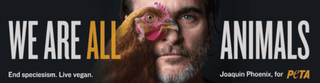 Other PETA billboards blocked by Lamar include ones blasting the Bandera Ham Rodeo in Texas and Texas A&M University’s muscular dystrophy experiments on dogs as well as an ad showing Oscar winner and PETA 2019 “Person of the Year” Joaquin Phoenix appearing with a chicken and the words “We Are All Animals. End Speciesism.”