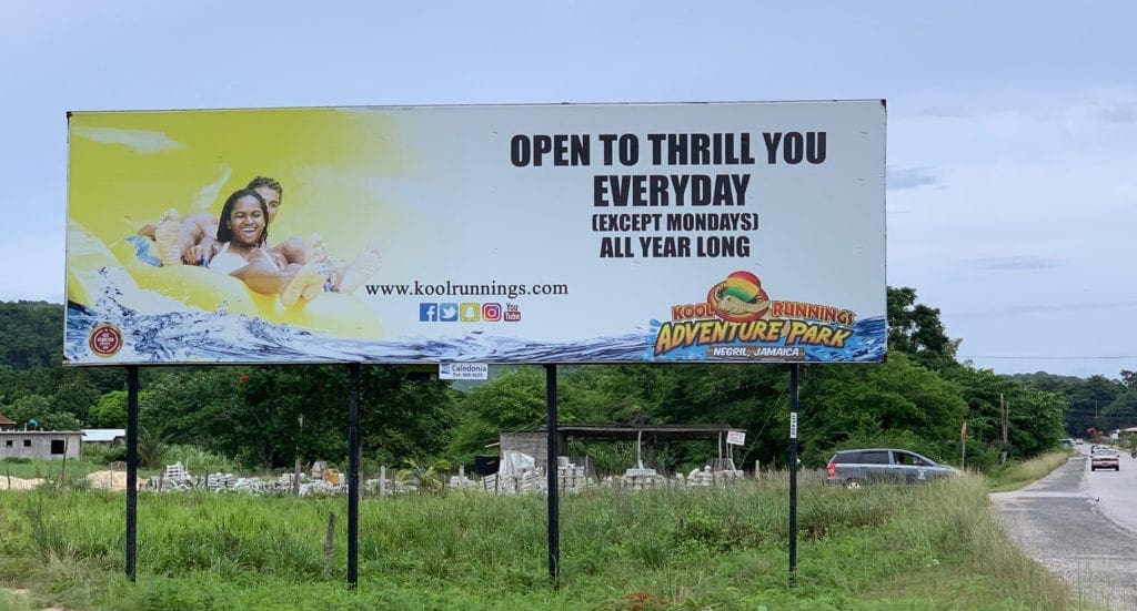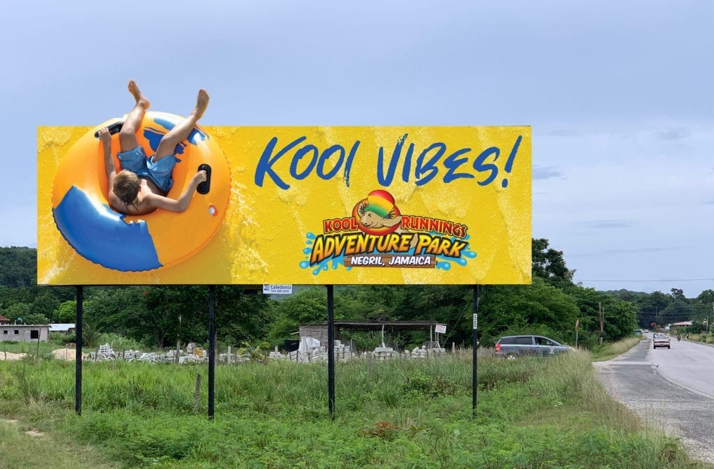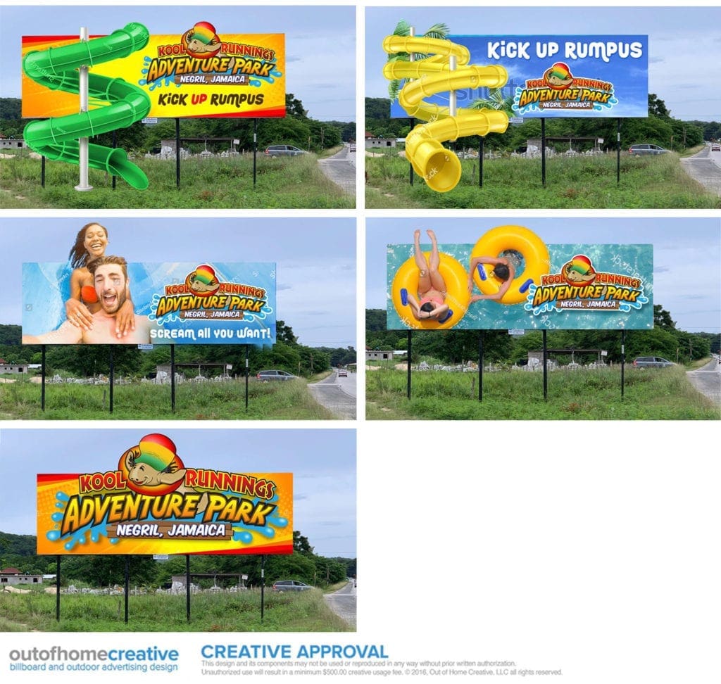 In September, the VP of Marketing for Kool Runnings in Negril, Jamaica, found the Schlitterbahn spec online while Googling “water park billboard ideas” and contacted me to redesign their billboard (below).
