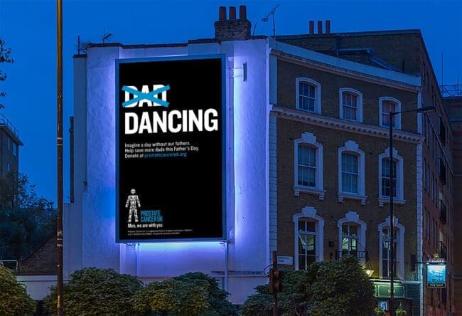 Finally, a nationwide DOOH campaign will run across shopping malls, pubs, and Clear Channel’s large format Storm network including the iconic Chiswick Towers site. The executions feature loveable ‘Dadisms’ as headlines such as ‘Dad dancing’ and ‘Dad jokes’, with the word ‘dad’ crossed out. Under each, the ads read ‘Imagine a day without our fathers. Help save more dads this Father’s Day’ with a link to donate via Prostate Cancer UK’s website.