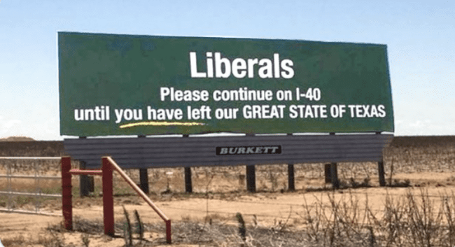 Running the wrong copy on a sign. I learned the hard way on that. I put up a sign for a client that said “Welcome to the great state of Texas. Liberals please continue on I-40.” I showed up in the office the next day and I had over 100 voice messages. Some were great job, others called me a bigot. I took a lot of heat. Fox news, USA Today…they all called and I talked to all of them.