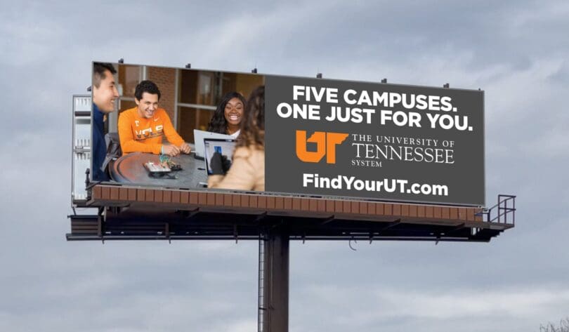 - The ad pictured here is for a university system with multiple campuses. The tag line is well written and covers the variety of choices while personalizing the message.