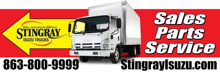 The red still draws the eye, but it gets an assist from the yellow arrow, which emphasizes the business name and visually communicates the direction to turn. The top corner of the truck also attracts attention by breaking the top plane of the ad and allows the product to be larger and centered. Contact info is reduced to the easy-to-remember phone number and the web site, where all the other directional info can be found. Finally, the text on the right is much larger and a drop shadow had been added for a little extra pop.