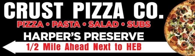 I just wanted to drop a note that the original ad is much more “on-brand” for this pizza place. Crust Pizza does not compete with your Papa Johns or Pizza Hut chains. It is more of a Grimaldi’s style place. The stylistic choices in the original ad reflected a slightly more upscale dining experience. Their logo, on the left of the display, is enough for locals to know exactly what the business is. I would not recognize the revised billboard as advertising the same restaurant.