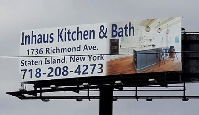 - The ad feels more like a giant business card than a billboard. The name, full address, and phone number arrangement contributes to that. The lack of a call to action does, too.