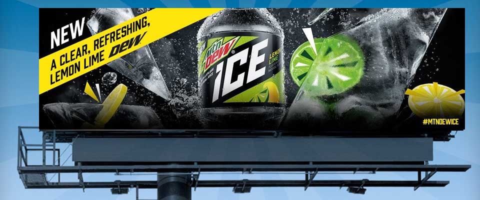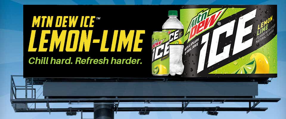 - The photo used is the hero shot featured in nearly all other promotions for the new Ice flavor from Mtn Dew. It’s a pretty cool photo when you can see the whole thing.