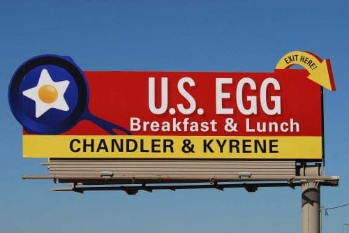 - The skillet is a great extension as well but unless this is their logo (I don’t know if it is or not), I would have set a photograph of a real skillet with fried eggs and bacon to bring the visual to life. I would have also placed it in front of the bottom banner with a drop shadow to create dimension.