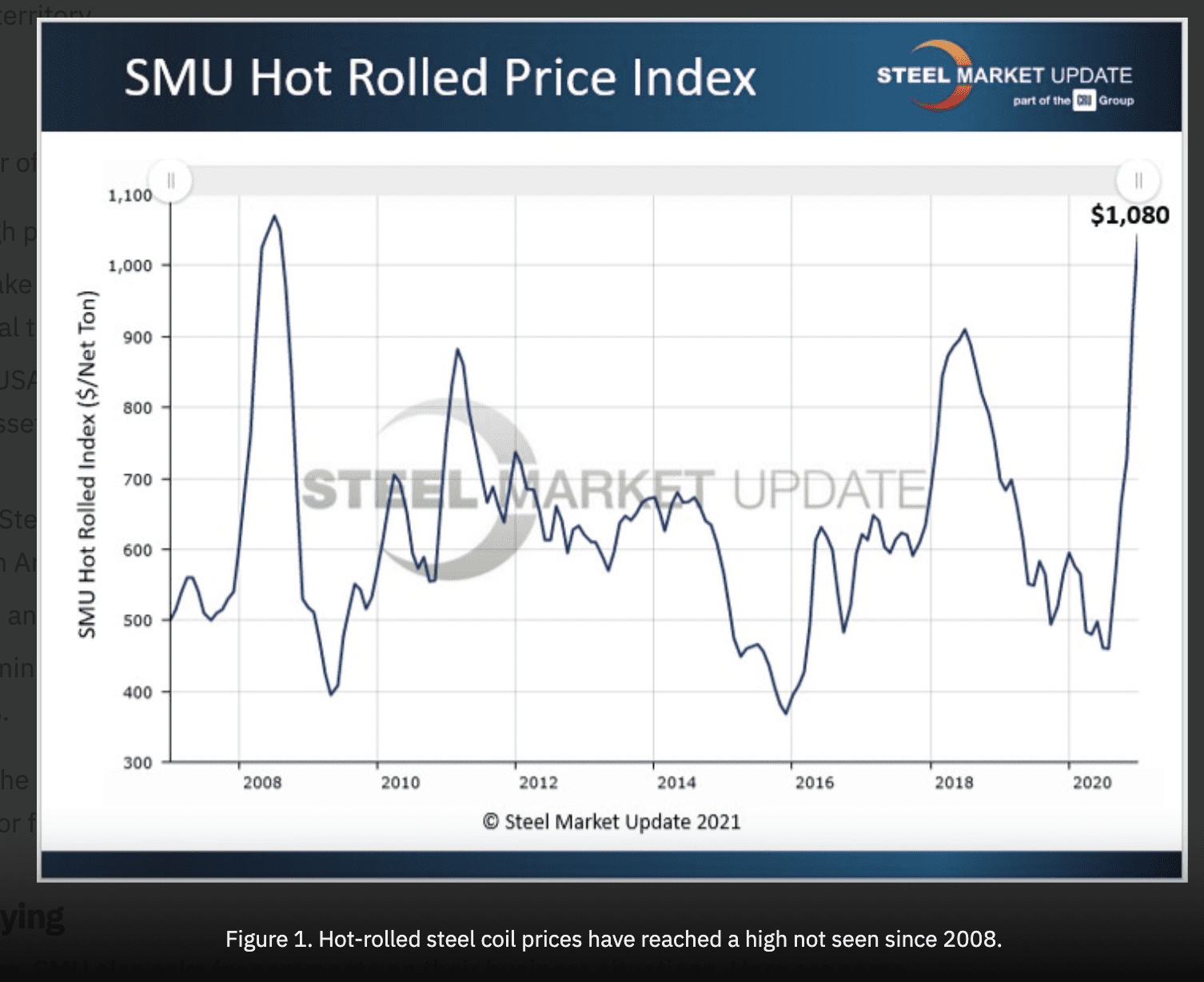 Source: Steel Prices reach levels not seen since 2008, The Fabricator, January 18, 2021