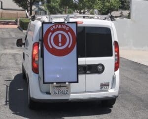 Road Runner screens feature the company’s patented Vehicle Operational Indicator (“VOI”) technology. The VOI integrates with the driver’s cockpit to allow the connected screens to act as a 46” high-resolution, LCD Digital Brake Light, alerting surrounding drivers when the vehicle operator brakes, selects turn signals, reverses, or activates emergency flashers. The Samsung ruggedized screens are highly visible day and night. When vehicle operations are not displayed, the screens can display a wide range of content, from brand advertising to Amber Alerts or any other critical public safety information.