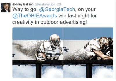 Isakson, who resigned from the US Senate at the end of 2019 citing health concerns, liked to share billboard images on his social media accounts. Here are examples: