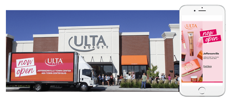 A leading beauty retailer also piloted shadowfencing around five store grand openings in five different markets. 28% of the total impressions were delivered to beauty enthusiasts within geofenced locations. Another 28% of impressions were delivered via the shadowfencing technology in close proximity to the mobile billboard advertisement. The remaining 44% of impressions were delivered by retargeting the devices collected through impression delivery of the shadowfence.