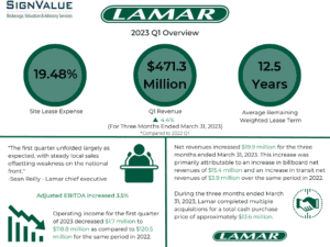 SignValue has prepared the following analysis of Lamar Advertising’s 1st Quarter 2023 financials.