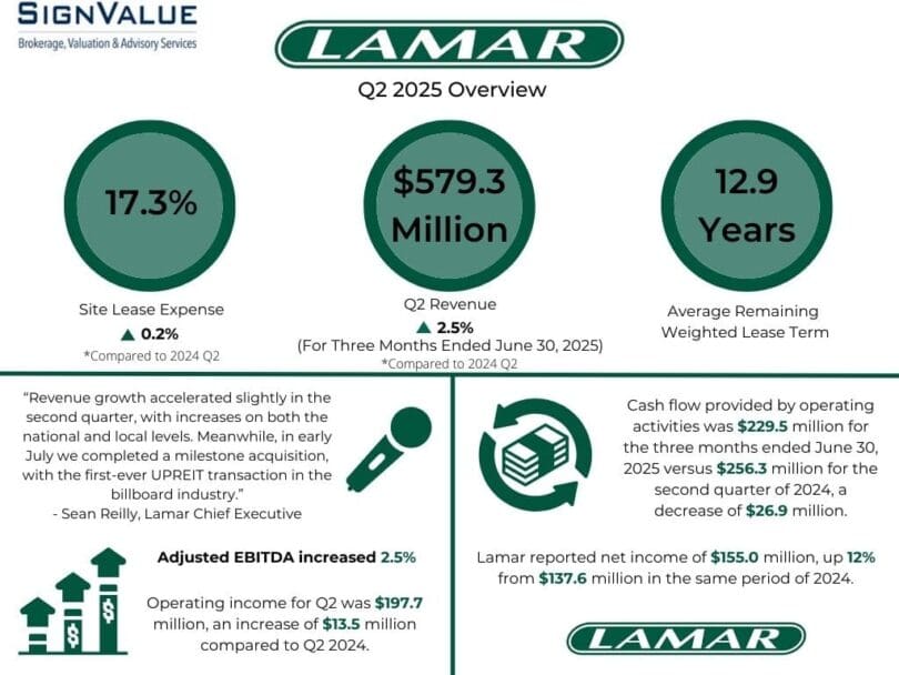 SignValue has prepared the following analysis of Lamar Advertising’s 2Q 2025 financials.