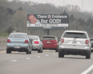 The billboards are designed to point people to Jesus and to encourage people to call a help line if they have questions or need answers.