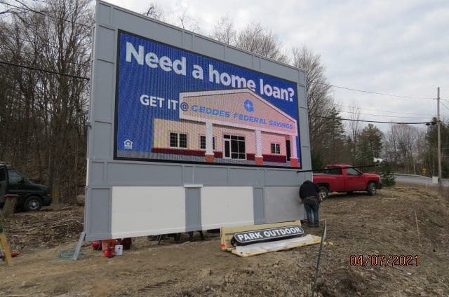 Park Outdoor’s Stephen Frank calls our attention to a new build on land owned by the town of Camillus, NY. The property had this old wood billboard.
