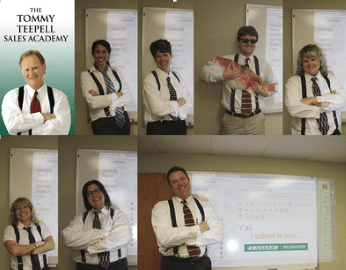 In the 1980’s, I did a series of recordings on ‘how to sell’ and would share those with account executives when they came on board. The people in these pictures are in our Milwaukee office and had all gone through the training. Back on Halloween in 2012, they all decided to dress as me!