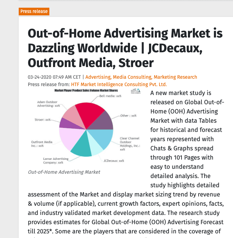 Want a laugh in challenging times? Look at this press release. It was dated yesterday. What world are the folks at HTF Market Intelligence living in?