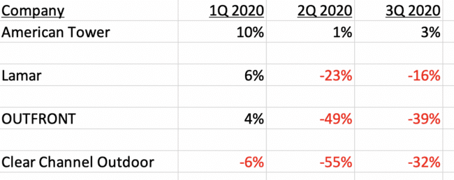 A risky asset will sell at a lower multiple because there is more volatility to future cashflow. Out of home ad revenues are cyclical and fall significantly in a recession. Tower assets are non cyclical and have stable demand. Look at the revenue change for American Tower versus the Big Three US out of home companies in the first 9 months of 2021.