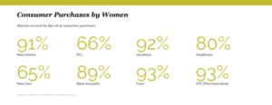 Not only does the female population have purchasing power, they also have a strong influence on their social networks and households. Women control over $31 trillion in worldwide spending with 80% identifying as the primary shoppers for their households and 92% passing along information about deals or online recommendations to others, reflecting how persuasive this demographic truly is.